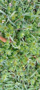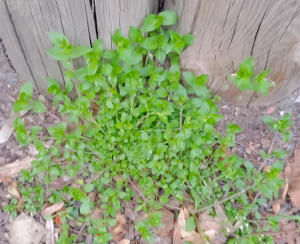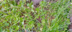 Vogelmiere (manchmal auch im milden bis warmen Winter an sonnigen Standorten, mag es etwas feucht und nicht zu warm.) gut zu erkennen an den feinen Härchen an einer Seite, beim knicken ist der Wasserleitfaden zu sehen, da dieser sich unter leichtem zerteilen nicht gleich zerstören lässt. Später weiße sternförmige Blüten.