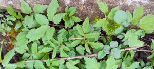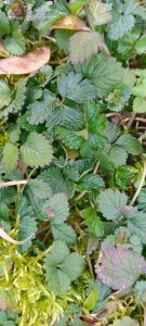 Wild bzw Walderdbeeren (kleine Blätter, Mini Früchte, kaum Fruchtfleisch)
